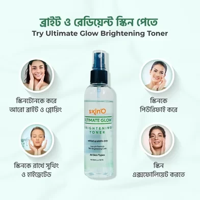 Use the Ultimate Glow Brightening Toner on your face after cleansing it with a facial cleanser. Then apply a serum or moisturizer. This toner can be used in two distinct ways: After soaking a cotton pad with the toner, blot your face, neck, and chest with it. Apply a small amount of toner to your palms and then apply pressure to your face.